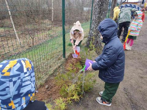 Совместными усилиями воспитанников дошкольного лесничества "Зелёный листок" Бегомльского детского сада и специалистов Бегомльского лесхоза, в рамках акции "Лес! Дабро! Парадак!", было продолжено создание "Аллеи поколений" на территории детского сада. В этот день было высажено 30 туй, которые теперь украшают территорию учреждения.