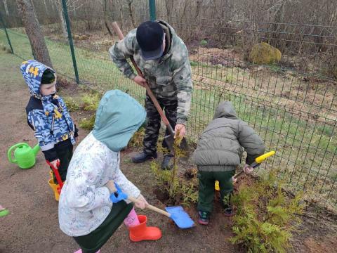 Совместными усилиями воспитанников дошкольного лесничества "Зелёный листок" Бегомльского детского сада и специалистов Бегомльского лесхоза, в рамках акции "Лес! Дабро! Парадак!", было продолжено создание "Аллеи поколений" на территории детского сада. В этот день было высажено 30 туй, которые теперь украшают территорию учреждения.
